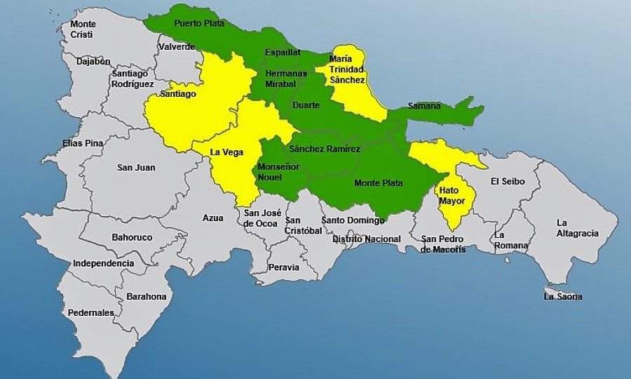 El Horizonte, Santo Domingo RD.- El COE mantiene 04 provincias en alerta amarilla y 8 en verde por posibles crecidas de ríos, arroyos y cañadas, así como inundaciones repentinas o urbanas, debido a que las condiciones del tiempo permanecen dominadas por el paso de una vaguada que provocará nublados, aguaceros, tormentas eléctricas y ráfagas de viento.
