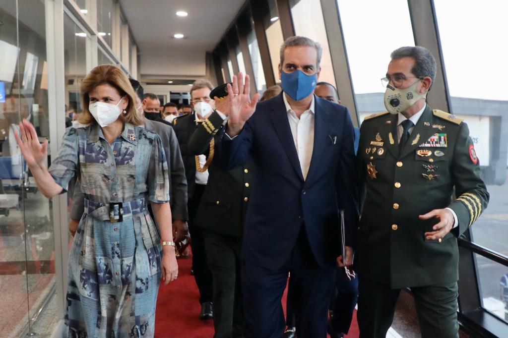 Recibieron al mandatario, la vicepresidenta, Raquel Peña; el ministro Administrativo de la Presidencia, Jose Ignacio Paliza; el ministro de Defensa, Carlos Luciano Díaz Morfa; el Administrador del Banco de Reservas, Samuel Pereyra Rojas y la directora de Comunicaciones y vocera de la Presidencia, Milagros Germán. También acompaño al presidente Abinader, el Canciller Roberto Alvarez.